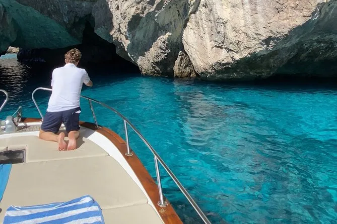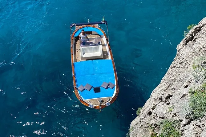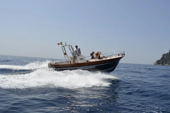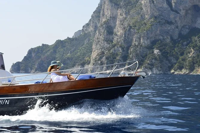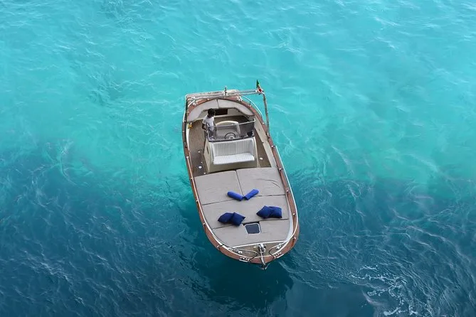 Escapa de las multitudes de Capri en un paseo privado en barco con tu propio patrón que te guiará por grutas marinas, bajo el arco de piedra de Faraglioni y dentro de cuevas luminosas como la Gruta Azul (entrada extra). Nada en aguas cristalinas o relájate con una bebida fría mientras recorres los rincones más salvajes de la isla—cada curva guarda una sorpresa.