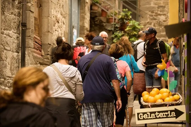 La caminata por encima de Manarola fue más empinada de lo que esperaba; mis zapatos agradecieron no haber llevado chanclas como el verano pasado. Pasamos junto a un hombre podando las vides, que nos saludó con un gesto sin dejar de trabajar; sus manos estaban manchadas de púrpura. Hubo un momento en que el sol iluminó el agua justo en el ángulo perfecto y todo parecía bañado en oro. No paraba de pensar: ¿cómo será vivir con esta vista todos los días? Más tarde, tomamos un barco entre los pueblos (las olas golpeaban fuerte el casco, una mujer gritó y luego se rió tan fuerte que todos nos contagiamos). Esta excursión de un día a Cinque Terre desde Florencia no es para quien no le gusten las sorpresas; el clima cambia rápido y Giulia revisaba el móvil constantemente para estar al tanto.