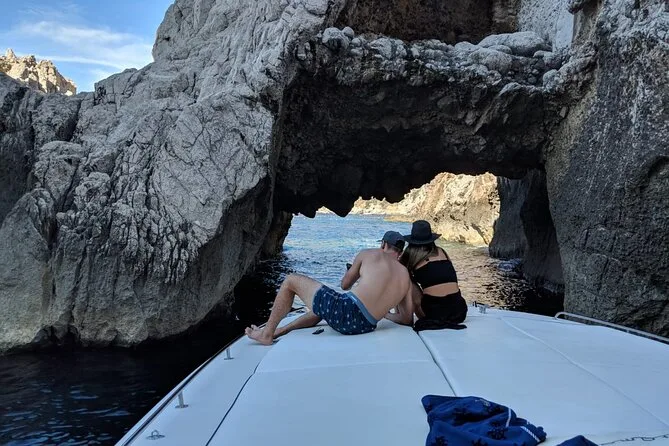 Tu día incluye el uso de máscaras de buceo para las paradas de natación, toallas frescas a bordo para que no tengas que traer la tuya, snacks como taralli y refrescos durante todo el recorrido. También te ofrecerán un vaso de prosecco y limoncello casero al regresar al puerto—todo cuidado por tu guía local mientras tú disfrutas en cubierta.