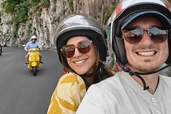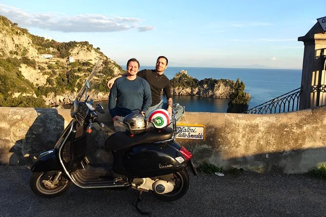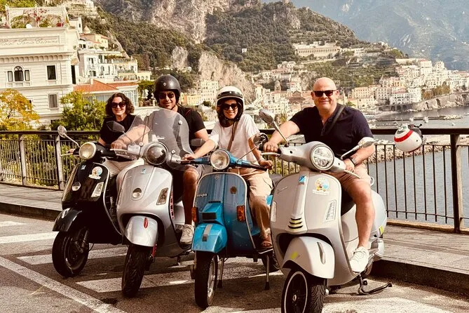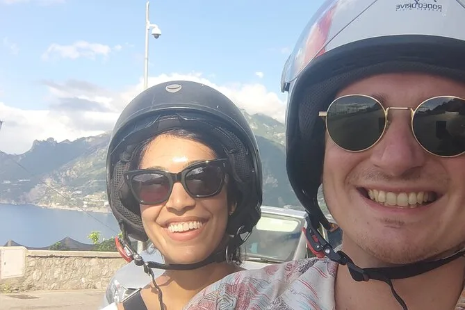 Tu día incluye recogida en hotel en cualquier punto de la costa o zona de Sorrento, uso de una Vespa clásica con conductor local experto (o conducción propia si se acuerda antes), seguro durante todo el recorrido, casco higienizado para seguridad y comodidad, además de paradas para café y pasteles en el centro histórico de Amalfi antes de regresar a última hora de la tarde o noche según la hora de inicio que elijas.