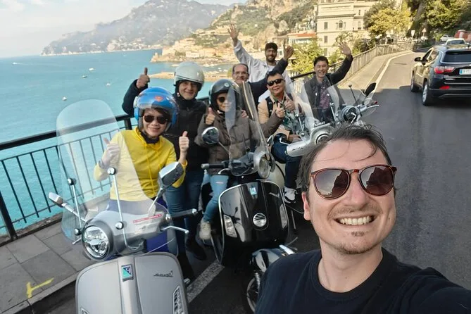 Vas de pasajero o conductor en una Vespa por carreteras serpenteantes desde Positano pasando por Praiano, Furore, Amalfi, Atrani y Ravello. Incluye recogida en hotel y un guía local con experiencia que comparte historias (y pasteles). Paradas en pueblos con vistas al mar, cafés y siempre esa brisa salada en el cabello.