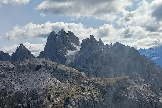 Después de Cortina, subimos hasta el Lago Misurina para una parada rápida y sacar fotos—el agua estaba tan quieta que parecía un espejo, salvo por un pato que nadaba tranquilo. A lo lejos se veían las Tre Cime di Lavaredo, esas tres cumbres afiladas que todos mencionan. Marco nos contó historias de escaladores atrapados en tormentas de invierno; parece que vienen de todas partes para intentarlo. Yo no me lo imagino—yo ya tenía frío solo de estar junto a la furgoneta.