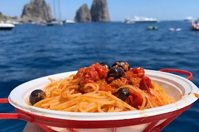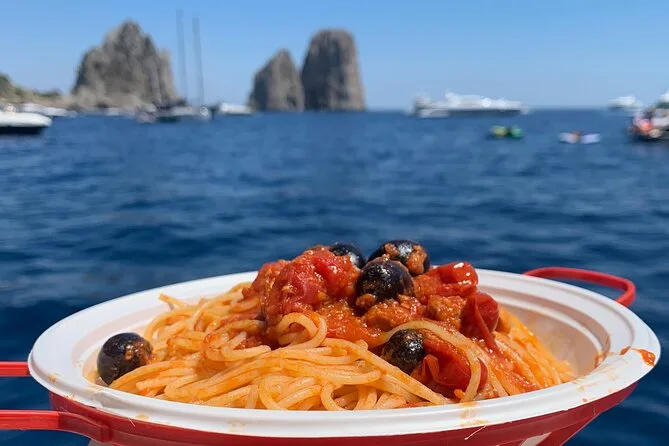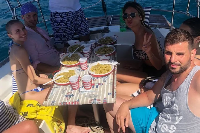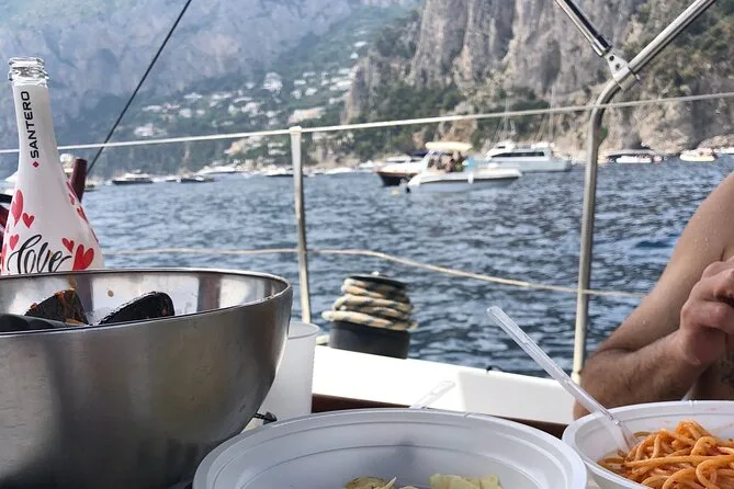¿Después del almuerzo? Más baño si querías o simplemente recostarte escuchando el suave golpeteo de las olas contra el casco. Cuando llegamos a Capri más tarde, esos Faraglioni parecían aún más imponentes de cerca—el mismo lugar del anuncio de Dolce & Gabbana. Algunos se lanzaron al agua de inmediato; otros capturaron fotos para sus redes. De regreso por la costa, paramos en una cala tranquila para un último chapuzón y otro brindis antes de regresar a casa, con la piel tibia por el sol y el cabello salado.