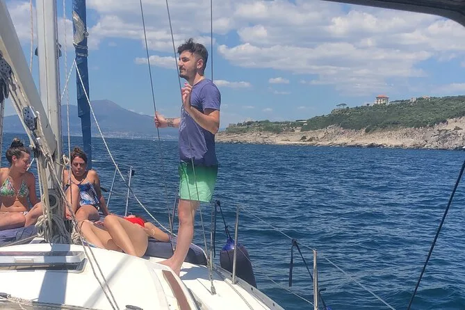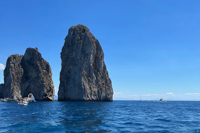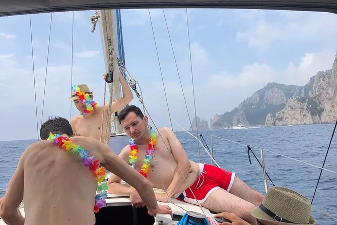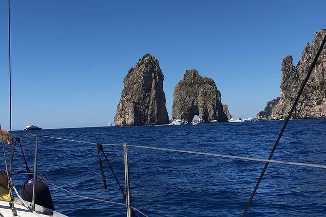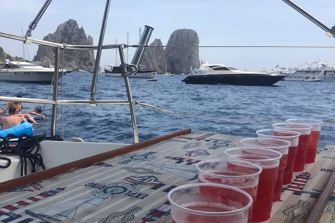 Navegarás desde Castellamare pasando por los famosos acantilados de Sorrento hasta las icónicas rocas Faraglioni de Capri. Nada, haz snorkel, disfruta de una ensalada caprese en cubierta y escucha historias locales de tu patrón—todo en un día relajado sobre el agua.