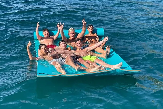 Tu ticket incluye agua embotellada, refrescos, almuerzo (ensalada caprese con mozzarella y tomates locales), uso del equipo de snorkel y acceso al baño a bordo. Solo necesitas tu traje de baño y algo de protector solar.