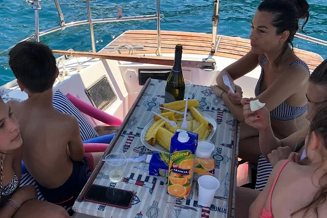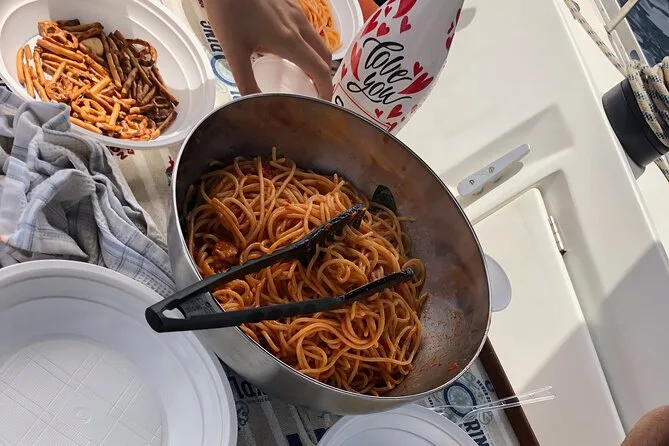 La experiencia dura casi todo el día—espera varias horas a bordo, incluyendo paradas para nadar y almorzar.