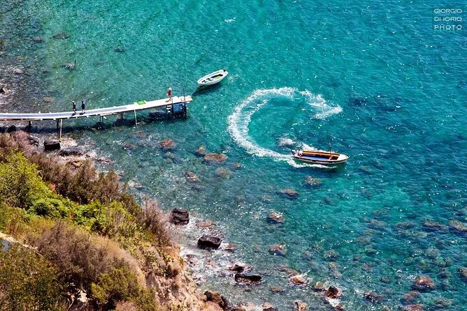 Pasarás por la bahía de Sorgeto, la cueva Grotta dell’Amore, la roca Fungo de Lacco Ameno, los acantilados de Punta Chiarito, la playa de San Francesco y otros puntos destacados de la costa.