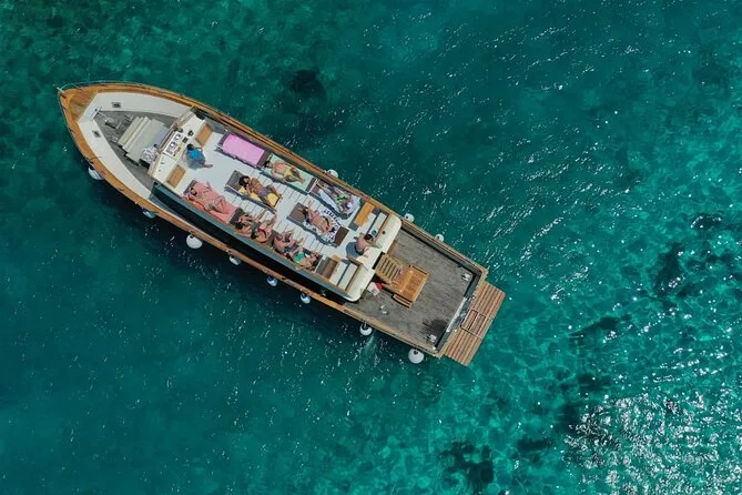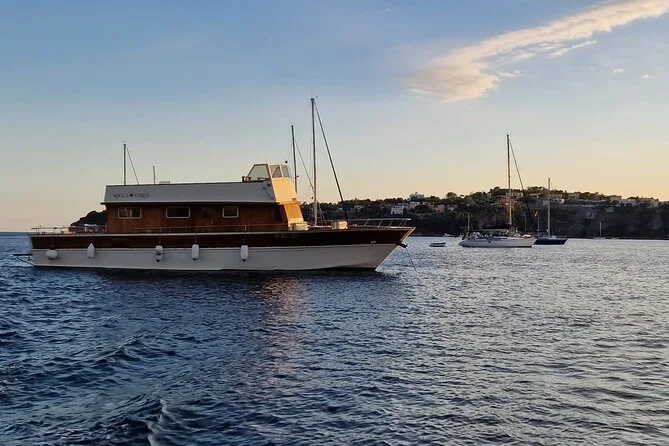 Navega alrededor de Ischia en un cómodo yate motor con un grupo pequeño, haciendo paradas para nadar en cuevas marinas y probar mariscos frescos a bordo. Hay pasteles caseros y limoncello local mientras pasas por la famosa roca Fungo de Lacco Ameno. Ríe, escucha música, siente el sol en la piel y guarda momentos que querrás revivir mucho después de volver a tierra.