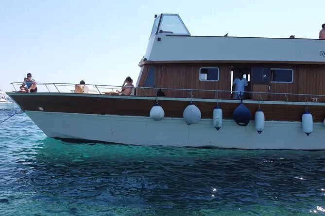 El recorrido dura varias horas por la costa de Ischia, con varias paradas para nadar y comer antes de regresar al puerto de Forio.