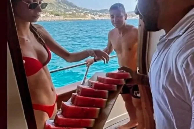 Más tarde navegamos junto a la roca Fungo de Lacco Ameno—un enorme hongo de toba que sobresale del mar—y entonces nos pasaron limoncello frío y pasteles hojaldrados recién salidos del pequeño horno bajo cubierta. El hojaldre se deshacía por todos lados; mis manos quedaron pegajosas de azúcar y cáscara de limón. Hombros quemados por el sol se juntaron para fotos grupales que nadie coordinó bien. Pensé: esto es lo que llaman “embriagarse de verano”—no solo por las copas, sino por todo lo que se mezcla en el aire.