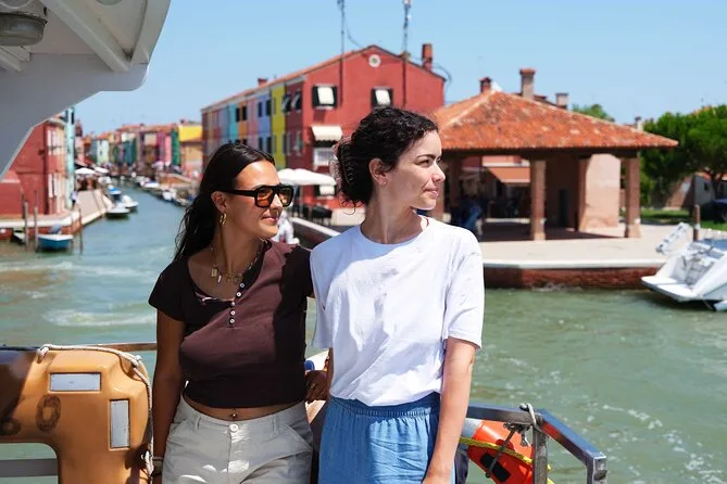 El tour incluye transporte cómodo en barco desde San Marco en Venecia hasta las islas Murano y Burano y regreso.