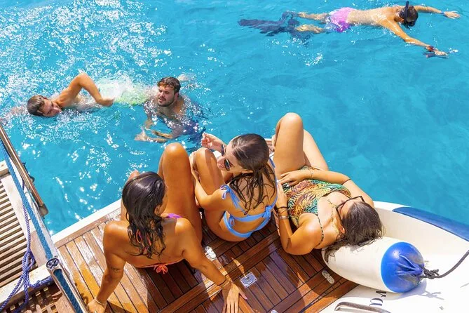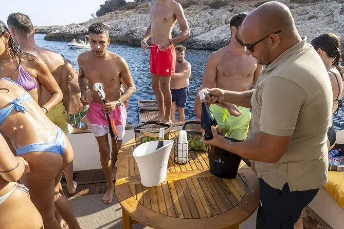 La primera parada fue Cala Azzurra, y la verdad, me quedé mirando el agua tan clara antes de lanzarme. ¿Sabes cuando puedes ver tus dedos bajo el agua? Así, pero más azul. Alguien me pasó una máscara de snorkel y traté de seguir a un pez plateado un rato — lo perdí casi al instante. De vuelta en el barco, Salvo sirvió prosecco y spritz para quien quiso (yo elegí té de durazno porque soy ligero para el alcohol). Los snacks eran simples — cacahuates y unos picositos llamados ‘cosini’ — pero saben diferente después de nadar. Intenté decir “gracias” con la boca llena; no fue mi mejor momento.