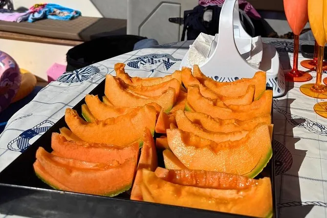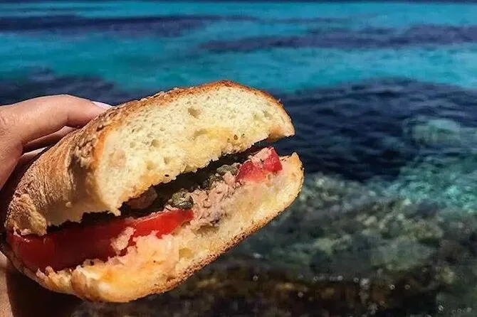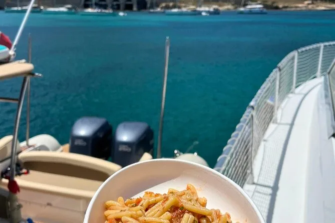 Tu día incluye salida desde el puerto de Trapani en un cómodo barco con 24 plazas y uso de equipo de snorkel en varias calas alrededor de Favignana y Levanzo. Disfruta un aperitivo a bordo con prosecco o spritz y snacks antes de parar para un almuerzo tradicional siciliano con dos tipos de pasta (pesto de Trapani y pesto genovés), pan cunzato, fruta de temporada, vino local o refrescos—todo mientras estás amarrado en el puerto de Favignana. Luego tendrás tiempo libre para explorar el pueblo antes de más paradas para nadar en Levanzo; fruta fresca y licor de melón completan el regreso—todos los impuestos y tasas incluidos.