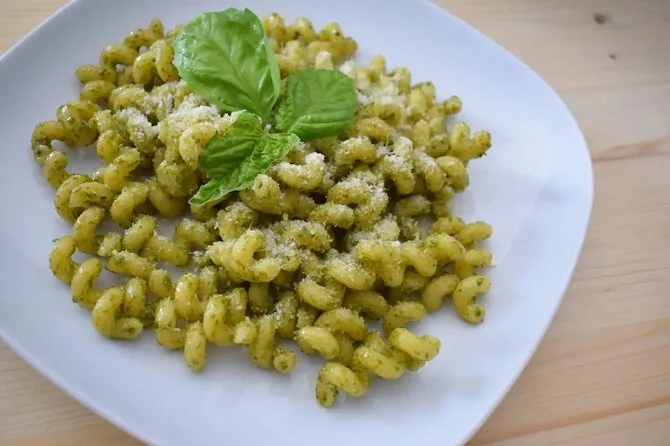 El almuerzo fue pasta con pesto de Trapani (almendras, tomates, aceite de oliva) y otra con pesto de albahaca — ambas mucho mejores que las que hago en casa, sin mentir. También pan cunzato: masticable, salado y con mucho aceite de oliva, en su punto. Comimos amarrados en el puerto de Favignana mientras gaviotas volaban y locales pasaban en esas bicicletas viejas y ruidosas que solo ves en Sicilia. Después hubo una hora para pasear por el pueblo; compré un tarrito pequeño de atún en aceite a una señora que no hablaba inglés pero sonrió cuando señalé su puesto.
