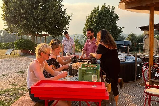 Tu día incluye recogida en Lucca en furgoneta con aire acondicionado, visitas guiadas a dos bodegas toscanas con paseos por viñedos y visitas a la bodega, agua embotellada para mantenerte hidratado entre catas, generosas degustaciones de vinos locales en ambos lugares (¡empezando temprano!), snacks durante el recorrido y un almuerzo ligero en el campo con productos frescos del huerto y especialidades regionales como salami y queso pecorino antes de regresar juntos a la ciudad.