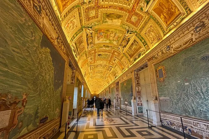 La Galería de los Mapas fue increíble — remolinos azul verdosos gigantes que parecían no acabar, y Marco nos retó a encontrar nuestras ciudades natales. Me perdí siguiendo ríos con el dedo mientras alguien más ubicaba la ruta de Colón hacia América. Cuando llegamos a la Capilla Sixtina, no podíamos hablar dentro (reglas), pero Marco nos preparó antes con historias de Miguel Ángel pintando boca arriba durante años — sinceramente, solo pensar en eso me dolió el cuello al mirar El Génesis. Todo estaba en silencio salvo el sonido de los zapatos sobre el mármol y un leve aroma a incienso que venía de algún lugar cercano. Me quedé allí más tiempo del que pensaba.