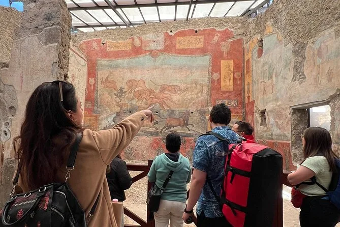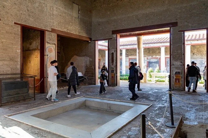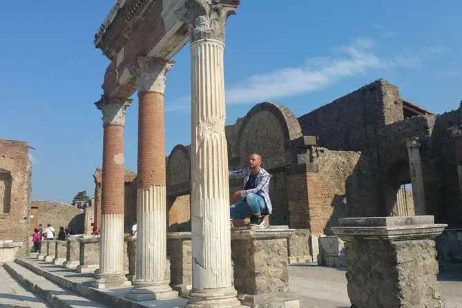 Recorrerás las calles antiguas de Pompeya en un grupo pequeño con un arqueólogo de verdad como guía (o audioguía en temporada baja). Siente los bancos de mármol en las Termas de Estabia, disfruta tiempo libre entre templos y mercados, y empieza el día con recogida en el centro de Nápoles o en el puerto de cruceros.