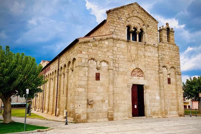 El tour para en varios lugares, incluyendo la Basílica de San Simplicio, Acueducto y Cisterna Romanos, Pozo Sagrado de Sa Testa, Castillo de Pedres, Tumbas de los Gigantes “Su Mont’e e S’Abe”, además de otros puntos como Corso Umberto y el Parque.