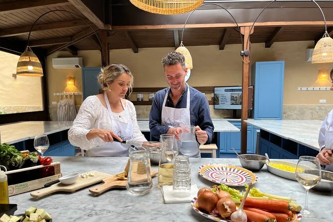 Tu día incluye todos los ingredientes para pasta y gelato, la guía experta de chefs sicilianos durante todo el taller, delantales y utensilios, una comida completa con tus platos acompañados de vino local o refrescos para niños, y un recetario digital para conservar. Si eliges la opción con mercado, también hay un tour guiado por el mercado de Capo antes de cocinar.