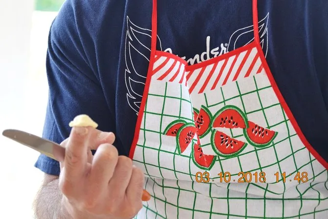 Tu día incluye todos los ingredientes y utensilios para cocinar, instrucción práctica de una anfitriona local dentro de su trullo, una breve caminata para conocer la historia de la arquitectura de los trulli si te interesa, y un almuerzo relajado de tres tiempos con tus orecchiette hechas a mano (con salsa de carne o vegetal), aperitivos como frisa o acqua sala, verduras de temporada del jardín, fruta recién recogida si está lista para comer, café o té al final — y mucho vino tinto regional durante la comida. Hay estacionamiento en el lugar; se pueden adaptar las dietas especiales si avisas con anticipación.