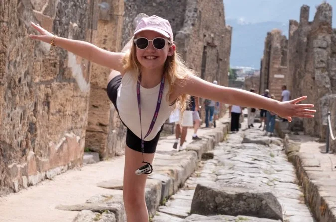 En una parada en una cafetería de carretera cerca de Roma, me sirven un espresso diminuto—no sé si es la cafeína o la emoción, pero me despierta al instante. Cuando llegamos a Pompeya, Francesca, nuestra guía que creció cerca, ya nos cuenta anécdotas de sus excursiones escolares. El aire huele a polvo dulce, como piedra antigua calentándose al sol. Al caminar por esas calles milenarias, viendo las marcas de los carros en las piedras, no podía dejar de pensar en lo extraño que es que aquí la gente vivía su día a día hasta que todo se detuvo. Francesca señaló unos grafitis en una pared (“¡Lárgate, plaga!”) y traté de imaginar quién lo habría escrito. Difícil de imaginar, pero a la vez no tanto.