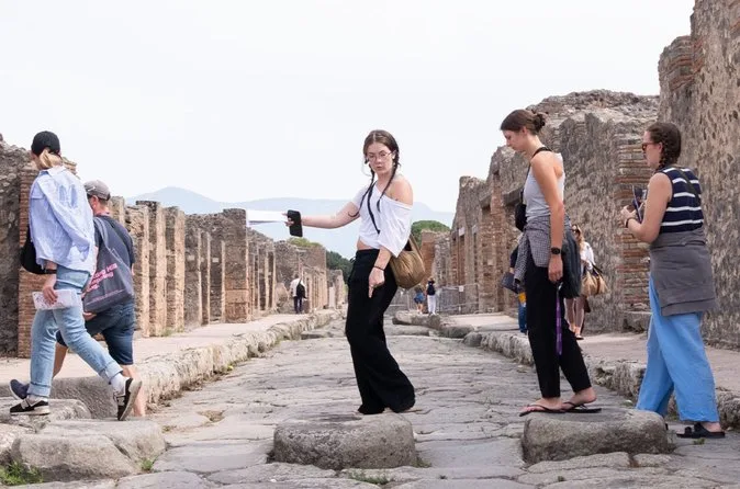 Un guía profesional y autorizado te lleva por los sitios principales como el Foro, las termas, el Lupanar, la Casa del Fauno y más.