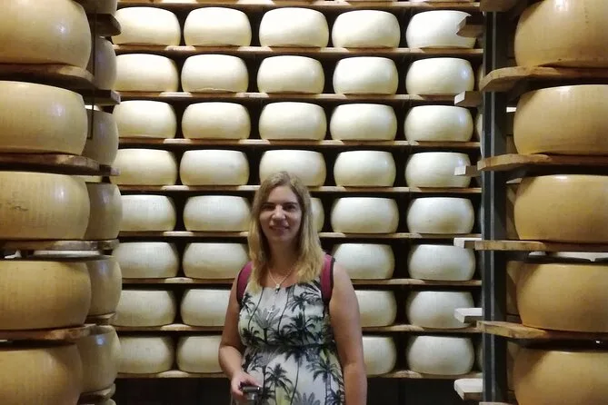 Visitarás fábricas activas de Parmigiano Reggiano y prosciutto, además de un productor auténtico de vinagre balsámico.
