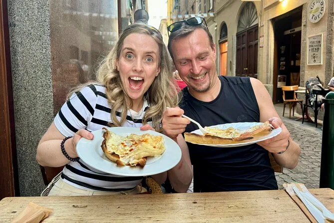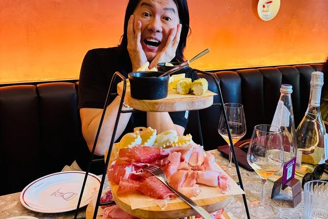 Tu experiencia incluye guía semi-privado con el chef Abram, formado en Michelin, o la narradora culinaria Cecilia, todas las degustaciones de street food seleccionadas desde dulces hasta pizza premiada y platos de queso o pasta según la hora, maridajes con vinos DOC/DOCG (y licores locales en tours nocturnos), agua durante el recorrido, más almuerzo en vinoteca o cena de varios platos en trattoria familiar—opciones vegetarianas disponibles si se piden con anticipación.
