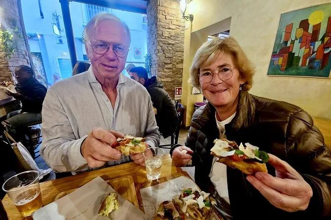 No esperaba reír tanto en un tour gastronómico. En un momento probamos pizza al estilo romano con ingredientes que nunca había visto (pera y gorgonzola — créeme). La masa tenía un borde masticable que me hizo querer otra porción aunque ya estaba lleno. El chef Abram nos contó por qué su panadería favorita usa harina de las afueras de la ciudad; incluso nos mostró la bolsa de harina como si fuera un trofeo. Hubo un instante en una pequeña vinoteca, mientras compartíamos antipasti, cuando alguien derramó su copa (esta vez no fui yo) y todos simplemente encogieron los hombros y siguieron charlando — sin dramas, solo más risas.