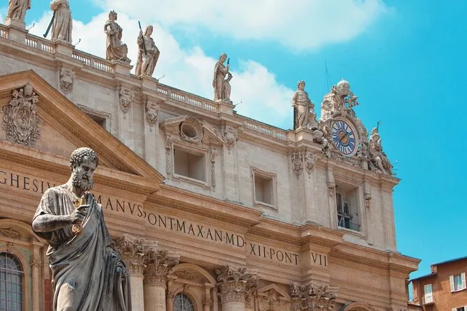 Tu día incluye acceso rápido a los Museos Vaticanos y la Basílica de San Pedro (sin hacer largas filas), un guía oficial en inglés que te contará todas las historias, incluso dentro de las salas con frescos de Rafael, una visita inmersiva a la Capilla Sixtina de Miguel Ángel y un descenso a las criptas papales bajo la Basílica.