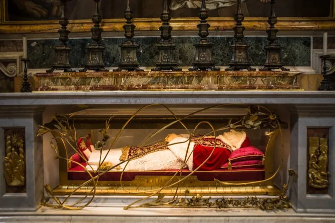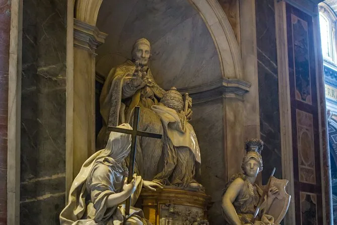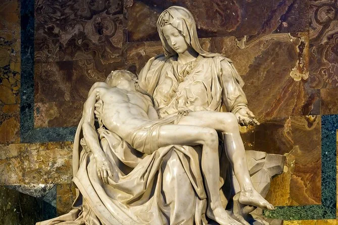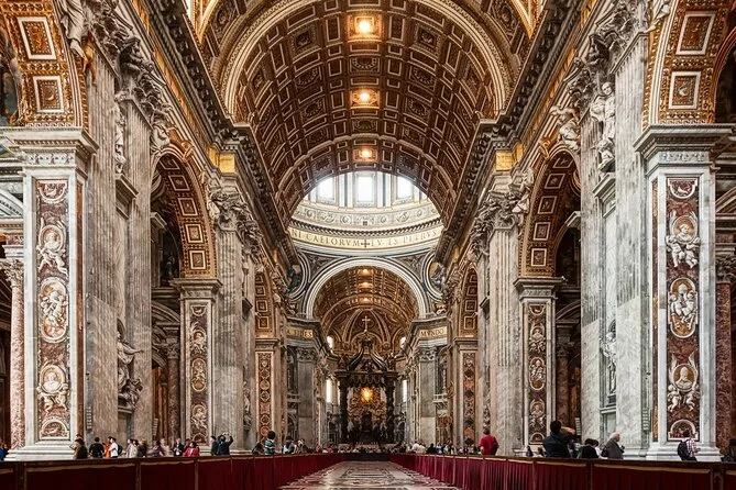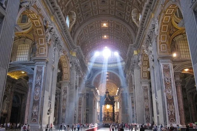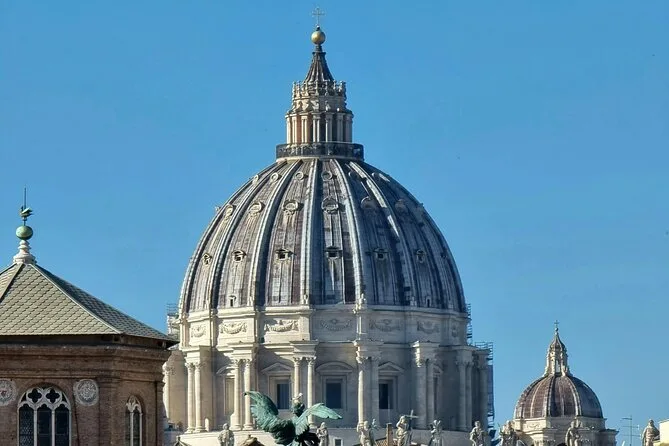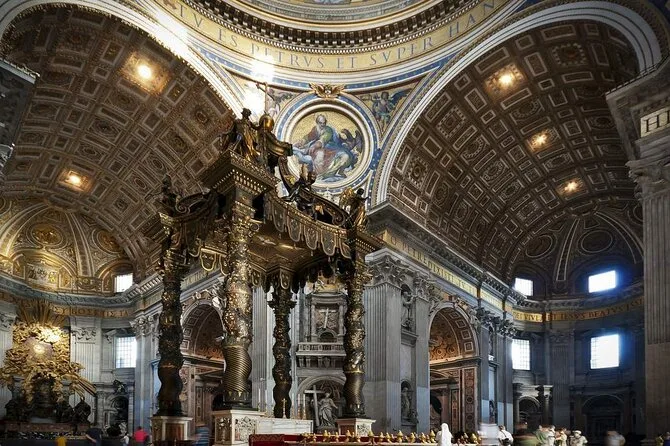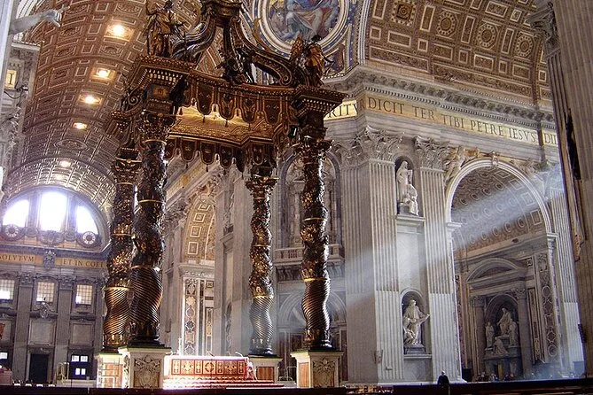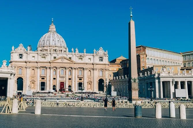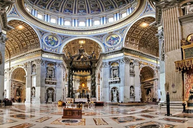 Tu día incluye entrada sin colas a la Basílica de San Pedro con un guía profesional autorizado que te llevará por obras maestras como la Pietà de Miguel Ángel y el Baldaquino de Bernini; acceso a las tumbas papales debajo; y subida a la Cúpula si la eliges — todo organizado para que solo te preocupes por disfrutar.