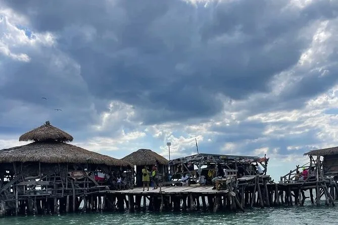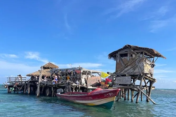 La última parada: Pelican Bar. Es algo increíble, una cabaña de madera sobre pilotes en medio de aguas poco profundas y azules. Tomamos otro bote por unos diez minutos; la brisa salada me golpeaba la cara y la sentía en los labios. En el bar sonaba reggae suave mientras la gente disfrutaba de una Red Stripe o agua de coco fresca. El personal era relajado pero siempre atento para que todos subieran y bajaran del bote con seguridad. Si tienes suerte, verás pelícanos volando cerca, o simplemente puedes relajarte viendo a los pescadores traer su pesca mientras la luz de la tarde pinta todo de dorado.