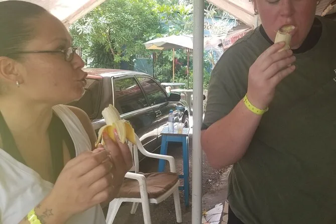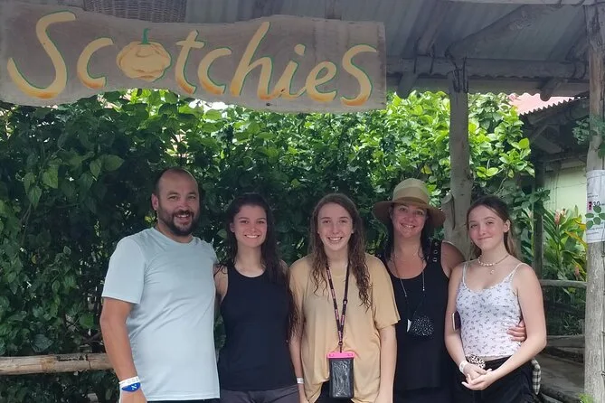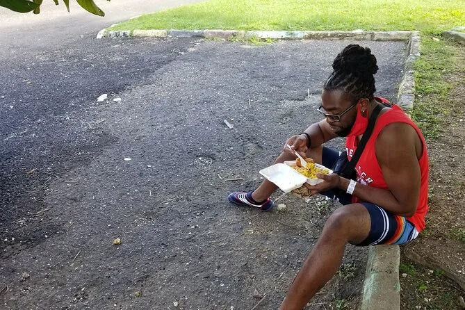 No podía dejar de pensar en lo cerca que están las cascadas de Ocho Ríos — ¿unos veinte minutos? — pero se siente como otro mundo. Los niños chapoteaban en la piscina de abajo mientras los mayores se sentaban en las rocas dejando que el agua les mojara los pies. Simone nos contó que los locales vienen aquí los fines de semana, no solo los turistas. Eso me hizo sentir menos como un extraño, de alguna manera. Después nos secamos al sol cerca del borde del bosque, tomando agua embotellada y viendo a la gente intentar (y casi siempre fallar) sacar fotos grupales sin que alguien parpadee.