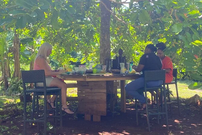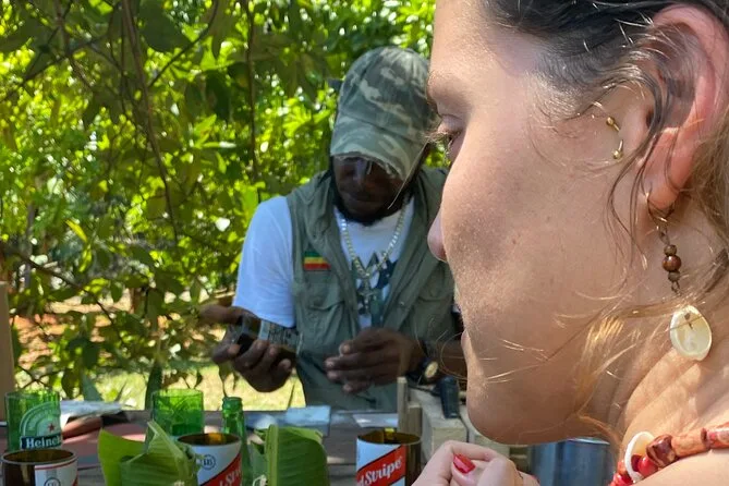 Tu día incluye todos los materiales para hacer tu souvenir jamaicano (joyería, velas y más), agua embotellada para refrescarte bajo los árboles, snacks locales como sopa casera y frutas frescas del jardín, además de tiempo para pasear entre animales amigables antes de regresar a la ciudad.