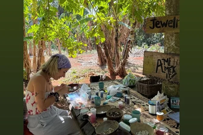 Crearás tu propio souvenir jamaicano en Montego Bay con la ayuda de una guía local, probarás fruta fresca del jardín, sopa casera y conocerás cabras curiosas. El taller es relajado y práctico — te llevarás algo personal (y quizás los dedos un poco cerosos) y recuerdos que duran más que cualquier souvenir comprado.