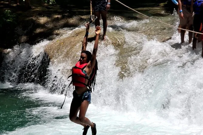 Nadarás en pozas azules salvajes en Secret Falls con tu guía local animándote, te columpiarás sobre el agua en cuerdas y luego subirás Dunn’s River Falls de la mano con nuevos amigos. Prepárate para salpicaduras frías, risas que resuenan entre los árboles y recuerdos que querrás contar mucho después de secarte.