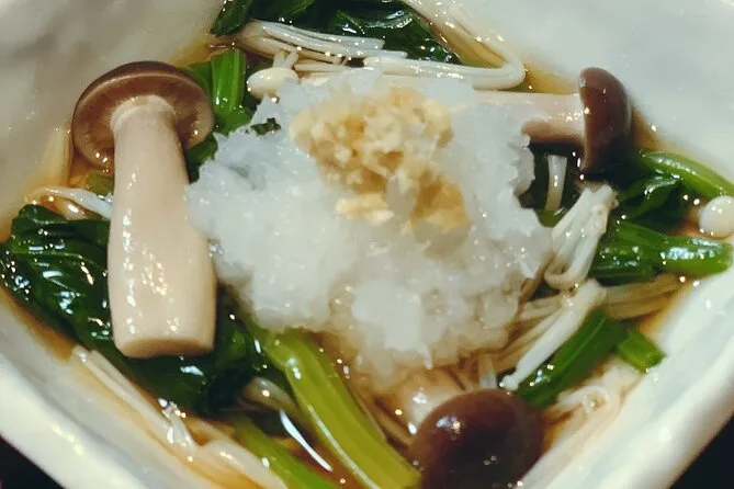 Tu experiencia incluye todos los ingredientes frescos para cada plato que cocinarás, la cena con todo lo que preparen juntos, uso de delantal durante la clase y la guía de un instructor local que habla inglés durante toda la experiencia en la cocina de Kyoto.