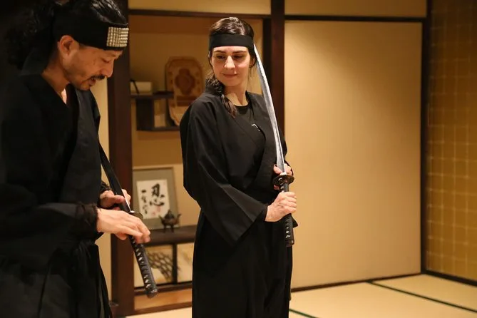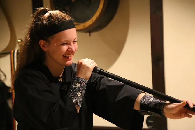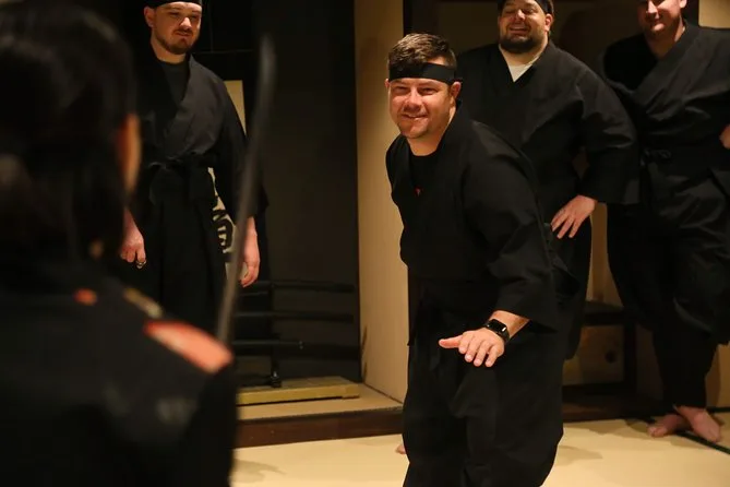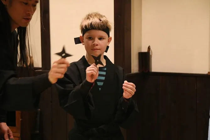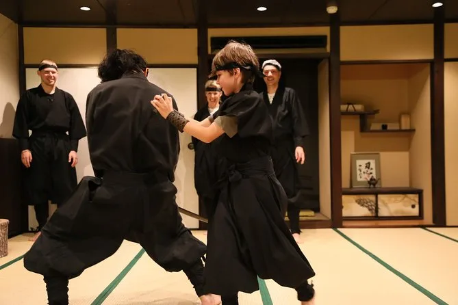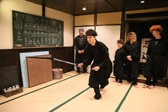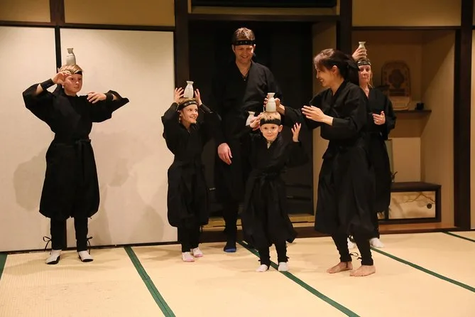 Tu hora incluye la entrada al dojo de Kyoto y el alquiler completo del equipo ninja para la sesión. Un sensei japonés que habla inglés guía todas las actividades, desde la meditación hasta la práctica con armas, y tendrás tiempo para usar espada, kunai, shuriken y cerbatana antes de volver a las calles de Kyoto.