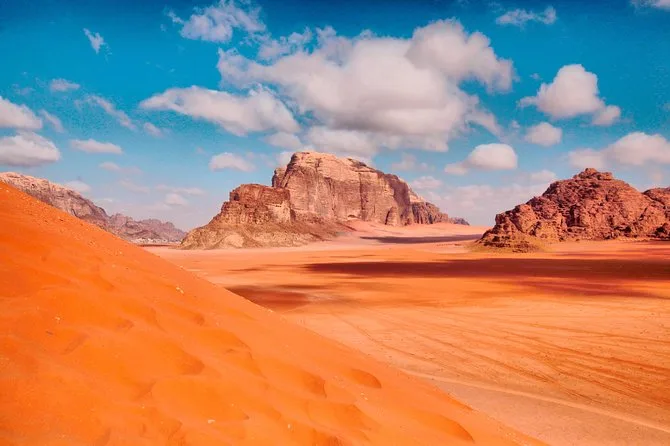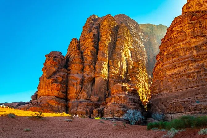 Recorre en 4x4 los rincones más salvajes de Wadi Rum con un guía local, deslízate en las dunas rojas, explora cañones con petroglifos milenarios y comparte un dulce té al atardecer antes de dormir en una tienda beduina bajo un cielo estrellado. No es solo ver lugares, es dejar que el desierto te frene un rato.