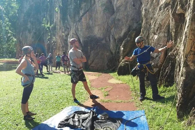 Tu mañana incluye todo el equipo certificado de escalada—casco, arnés, zapatos, bolsa de magnesio—y la guía de un escalador local profesional. También tendrás soporte básico de primeros auxilios si hace falta y traslado privado al templo de Batu Caves una vez termines de escalar las paredes cercanas.