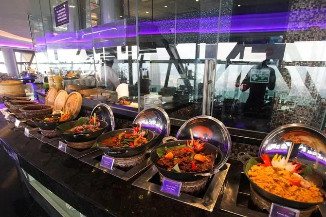 Sube a la Torre de Kuala Lumpur para disfrutar de un buffet en ARAS — almuerzo, cena o té de la tarde — con traslado desde el hotel incluido. Saborea platos locales e internacionales mientras contemplas el skyline de KL desde 282 metros de altura. La atmósfera es tranquila; seguro querrás quedarte un rato más para disfrutar del paisaje.
