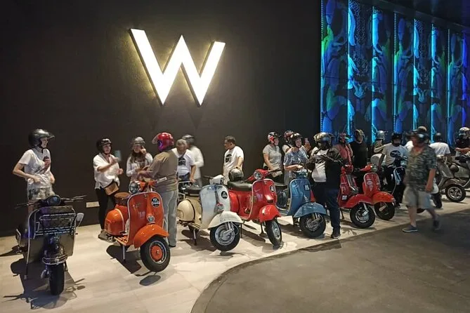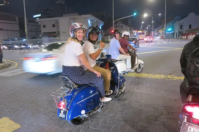 Tu noche incluye transporte privado en Vespa con conductor por los barrios de Kuala Lumpur tras el anochecer; todo el equipo de seguridad como casco y chalecos; cena con fideos malayo-chinos, platos malayos en un warung y especialidades indias en Brickfields; agua embotellada, refrescos y bebidas alcohólicas si quieres; ponchos por si llueve; botiquines de primeros auxilios; y regreso al hotel o a un local con música si aún quieres seguir la fiesta.