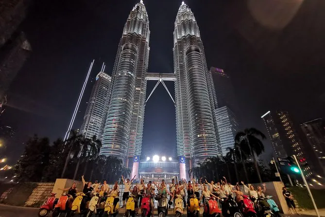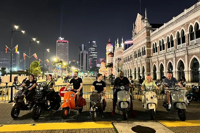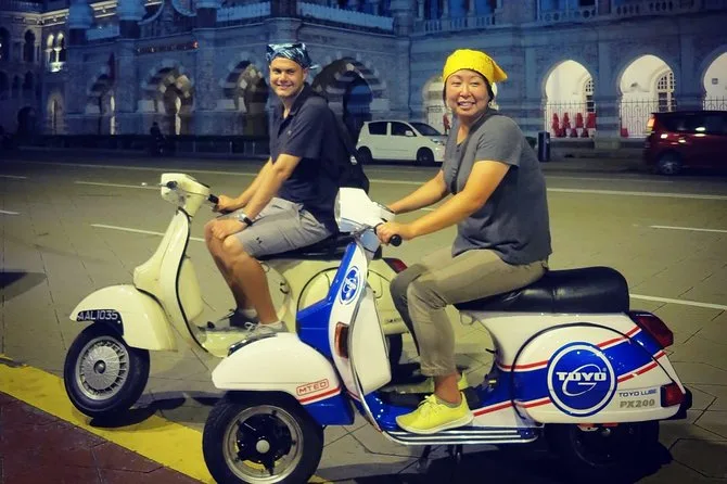 Recorre las calles nocturnas de Kuala Lumpur en Vespa con un conductor local, degustando fideos malayo-chinos, platos picantes en un warung y dulces en Little India de Brickfields. Risas, lluvia inesperada (ponchos incluidos), mercados animados y música de fondo mientras descubres KL de una forma que no lograrías a pie ni en coche.