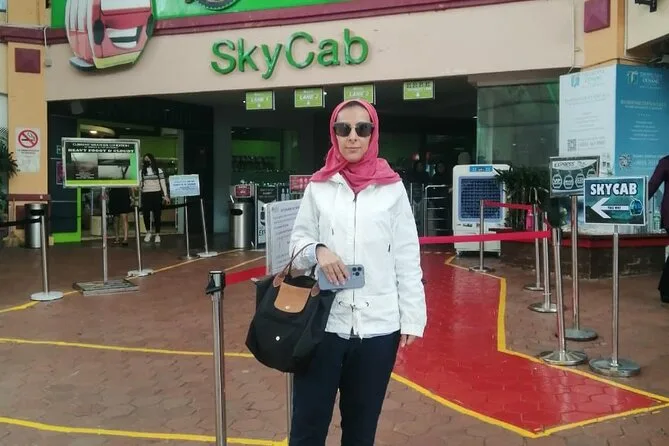 Luego tocó subir en teleférico al monte Machincang—Hafiz nos dio los tickets exprés para saltarnos la fila (me sentí VIP). El viaje es casi mágico: de repente estás sobre la selva tropical, solo con el canto de los pájaros y el viento. En la estación superior cruzamos el Sky Bridge—un poco emocionante si miras hacia abajo. Allí arriba hay una cafetería pequeña donde tomé una bebida fría; nada lujoso, pero justo lo que necesitaba después del sol.