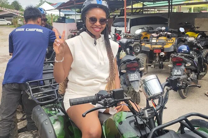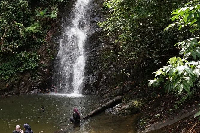 Después seguimos por carreteras serpenteantes hasta la Playa de Arena Negra. Estaba más tranquila de lo que esperaba—solo unos pescadores arreglando redes bajo unas palmeras. La arena es realmente oscura, casi color carbón, y se sentía fresca entre mis dedos. Hubo un momento en que todo quedó en silencio salvo el sonido del agua rozando la orilla. No me metí al agua, solo me quedé mirando las islas a lo lejos. Nuestro tour privado por Langkawi nos permitió quedarnos el tiempo que quisimos; sin prisas.