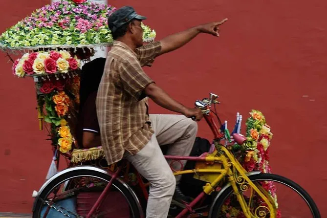 Después llegó la calle Jonker — aunque no era hora del mercado nocturno, se sentía ese murmullo de voces y el ruido de las tiendas abiertas. Paseamos entre puestos que vendían desde camisas batik hasta pequeños frascos de pasta de chile. El almuerzo llegó rápido: bolas de arroz con pollo en un lugar que Hafiz juraba que era “auténtico”. El arroz estaba pegajoso y caliente, y la verdad, podría haber comido el doble, pero no quería parecer glotón. La iglesia Christ Church destacó con sus paredes rojas desgastadas y gente tomando fotos frente a los triciclos decorados con flores de plástico. Hay algo reconfortante en un lugar que no intenta impresionarte, sino que te deja perderte en su historia.