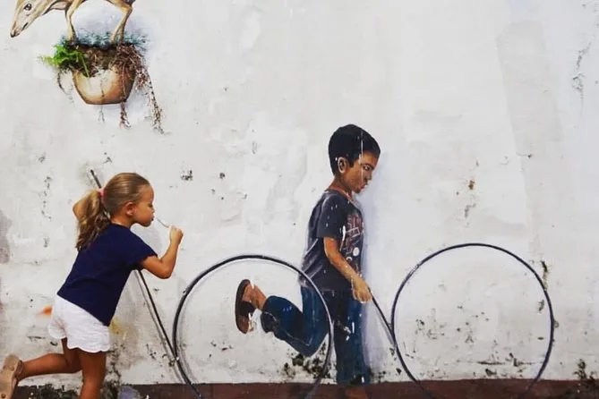 La subida a la colina de San Pablo me sorprendió (esas escaleras no son broma), pero arriba una brisa hizo que todo se calmara por un momento. Las ruinas están medio cubiertas por helechos; se ven lápidas antiguas con nombres holandeses grabados. El templo Cheng Hoon Teng olía a incienso y madera vieja — una mujer barriendo se detuvo un instante para saludarnos con la cabeza y siguió con su trabajo. Cuando llegamos a la Mezquita de los Estrechos de Malaca, la luz de la tarde la hacía parecer realmente flotando sobre el agua. Hafiz dijo que si vienes con la marea alta, casi parece que estás subiendo a un barco.