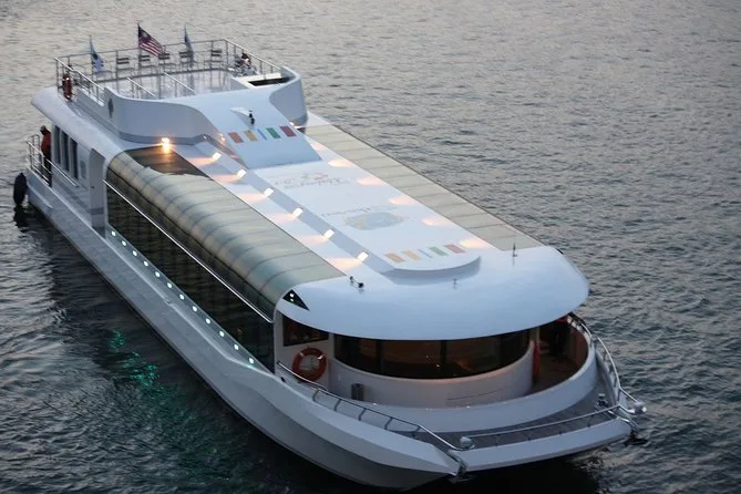 El paseo en barco por el lago fue más tranquilo de lo que esperaba — y para bien. Había una brisa suave que venía del lago Putrajaya y se reflejaban en el agua todos esos puentes y cúpulas. Unos niños nos saludaron desde la orilla cerca de la plaza Dataran Putra. Si tu grupo no es lo suficientemente grande para el barco principal, te ponen en uno más pequeño (el nuestro fue perfecto). En un momento me recosté y vi cómo el cielo cambiaba de color sobre el Centro de Convenciones — parece una nave espacial posada en la colina.