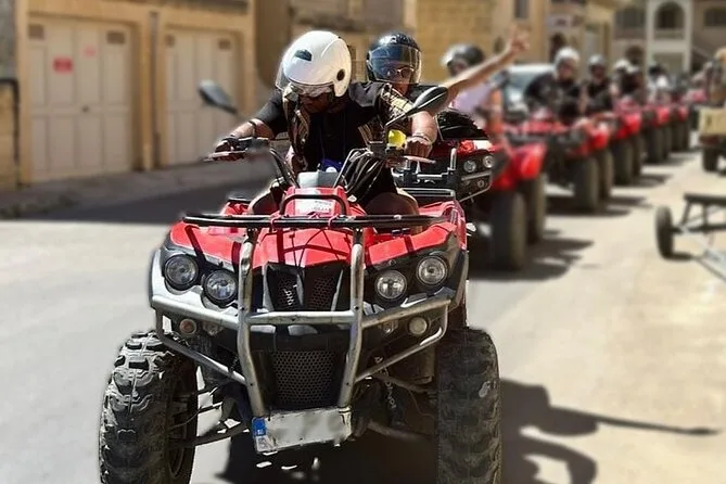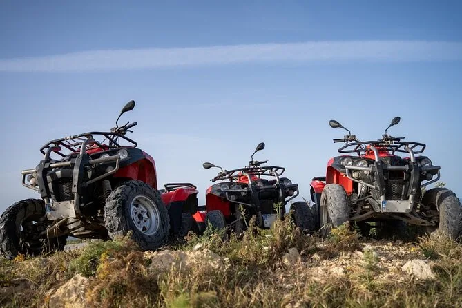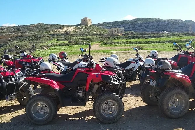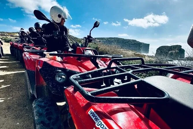 Tu día incluye recogida y regreso al hotel o punto cercano, uso del quad con casco y redecilla, guía local durante todo el recorrido por el campo y la costa de Gozo, seguro completo para todos, degustaciones de comida en ruta, almuerzo tradicional y vuelta a Malta en barco privado pasando por las cuevas de Comino — ¡no olvides tu licencia si quieres conducir!