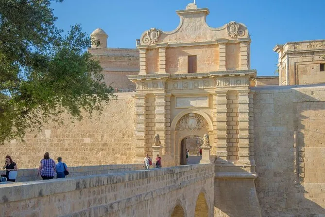Tu día incluye paseos guiados por Mdina y las catacumbas de Rabat, paradas para fotos en los acantilados de Dingli, entrada a los jardines de San Antón cerca del Palacio Presidencial (vistos desde afuera), tiempo para explorar el pueblo artesanal de Ta’ Qali, un almuerzo tradicional maltés y transporte en vehículo con aire acondicionado entre los sitios, terminando en la cúpula de Mosta.